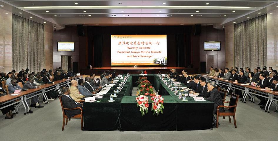 秦成勇对坦方客人来院访问表示热烈欢迎,并向坦方介绍了医院总体概况及与坦桑尼亚医疗合作情况。他说,山东省立医院始建于1897年,是一所具有117年历史的百年医院。1968年山东省派出第一批赴坦桑尼亚医疗队,其中山东省立医院医疗队员有11名。截止到目前,医院共派出医疗队22批次,医疗队员71名。他们远涉重洋到达坦桑尼亚,在进行医疗合作的过程中与坦桑尼亚人民结下了深厚的友谊。2004年5月,坦桑尼亚共和国前总统姆卡帕曾来医院参观访问,对医院医疗队的奉献精神给予了高度评价。今天,基奎特总统阁下的到访,必将引为我院与贵国医疗合作的荣耀。