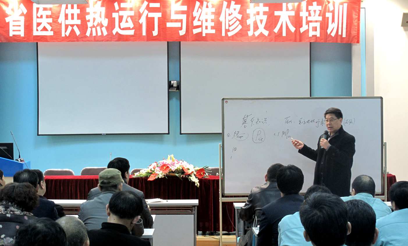 2014年11月21日,总务部竺建强处长对医院运行保障中心与后勤维修中心职工、“医管家”、“鲁物”物业公司员工及供热季节工,开展了一堂名为《省医供热运行与维修技术培训》的专题技术讲座。竺处长从热力学基本知识、供热运行技术及供热维修技术三个主题展开,向大家普及了热力学的相关基础知识;重点讲解了省立医院供热系统的构成与运行,及怎样根据天气情况调节蒸汽用量的技术细节;同时对故障维修需要注意的各项细节、要求进行了细致地讲解。