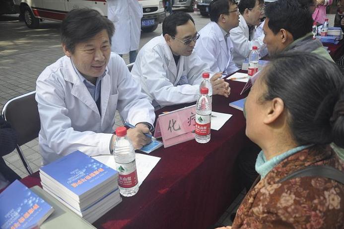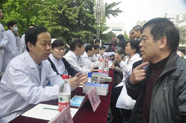 为更好的做好肿瘤防治宣传,提高全民防癌意识,增加科学抗癌知识,2015年4月21日,山东省立医院内科党总支组织相关专业科室,于中心院区办公楼前广场开展了“第二十一届全国肿瘤防治宣传周暨内科总支系统党员奉献日”大型公益义诊咨询活动,活动吸引了来自全省各地的群众参与,将肿瘤防治宣传周活动推向高潮。