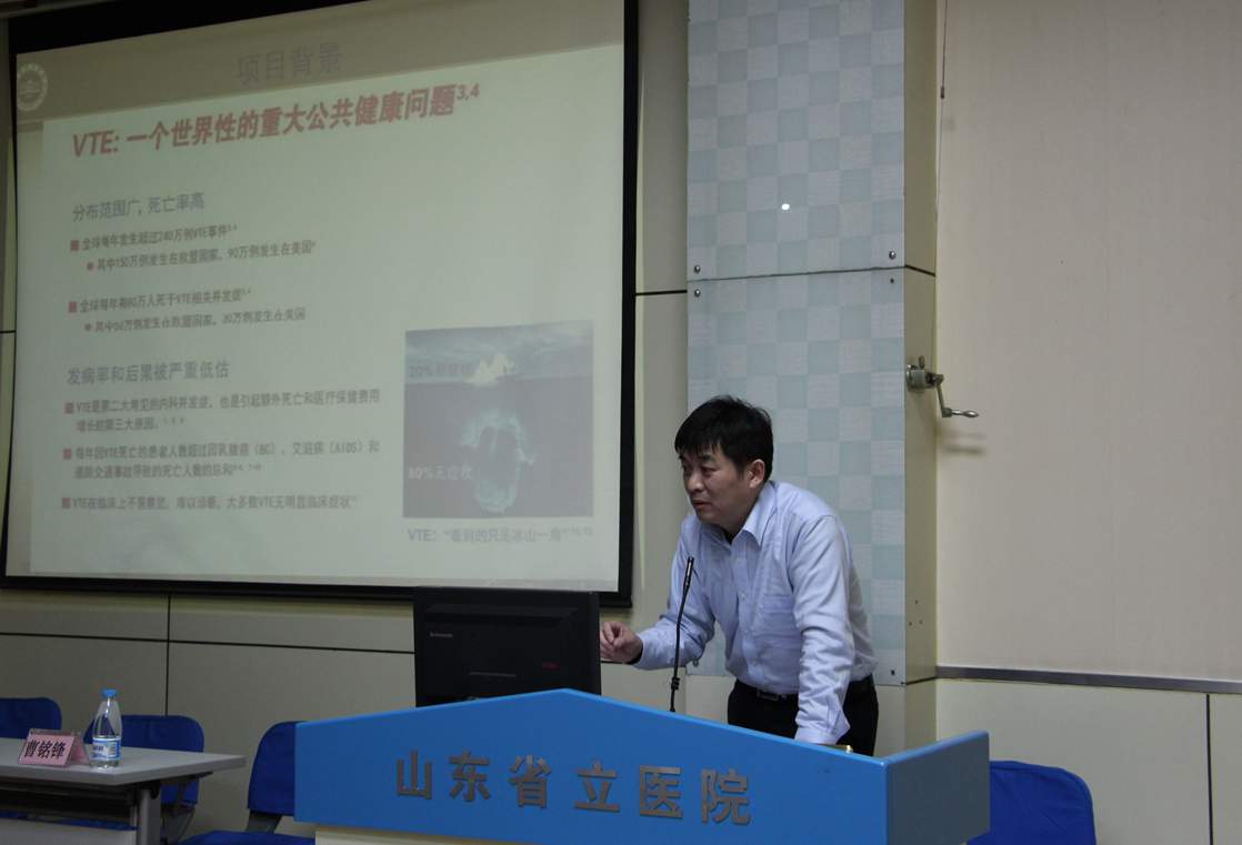 王玉林副院长代表工作领导小组作重要讲话,他指出以静脉血栓栓塞症(VTE)为主的血栓性疾病,特别是肺栓塞(PE),以其高发生率、高致残率和高病死率,越来越引起临床广泛的关注。虽然自2001年我院成立血管外科,使VTE病人的诊治相对集中,治疗逐渐规范,但因多数VTE病人合并症多、病情复杂、危重、涉及多科室等原因,VTE的诊断、治疗仍然不能令人满意。因此,建立一个VTE平台,提高院内各科室对VTE的诊断、治疗水平,加强各科室间的协调合作,对提高VTE的诊治效果尤其重要,可明显减少患者的不良后果,降低医院、医生的医疗风险,减少医疗纠纷,减轻医疗负担。