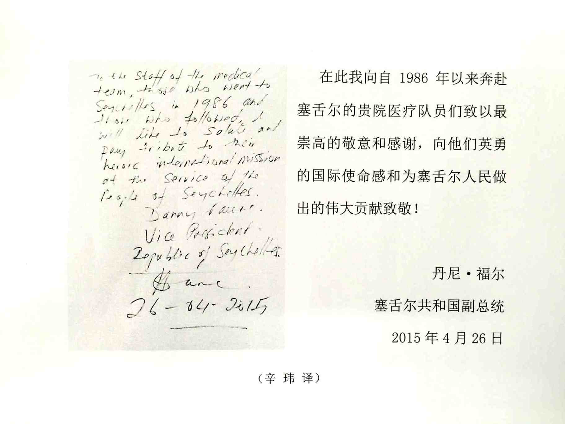 塞舌尔共和国副总统丹尼·福尔为我院题词