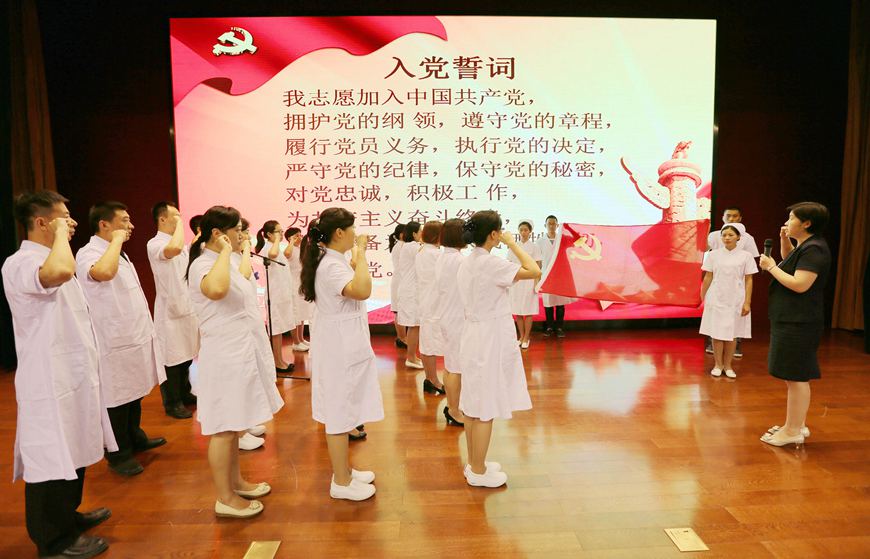 医院党委书记、院长秦成勇作了总结讲话。秦成勇首先代表医院党委向受到表彰的先进集体和个人表示热烈祝贺,向奋战在全院各个岗位上共产党员和离退休老党员致以节日的问候,向参加入党宣誓的新党员表示热烈欢迎。