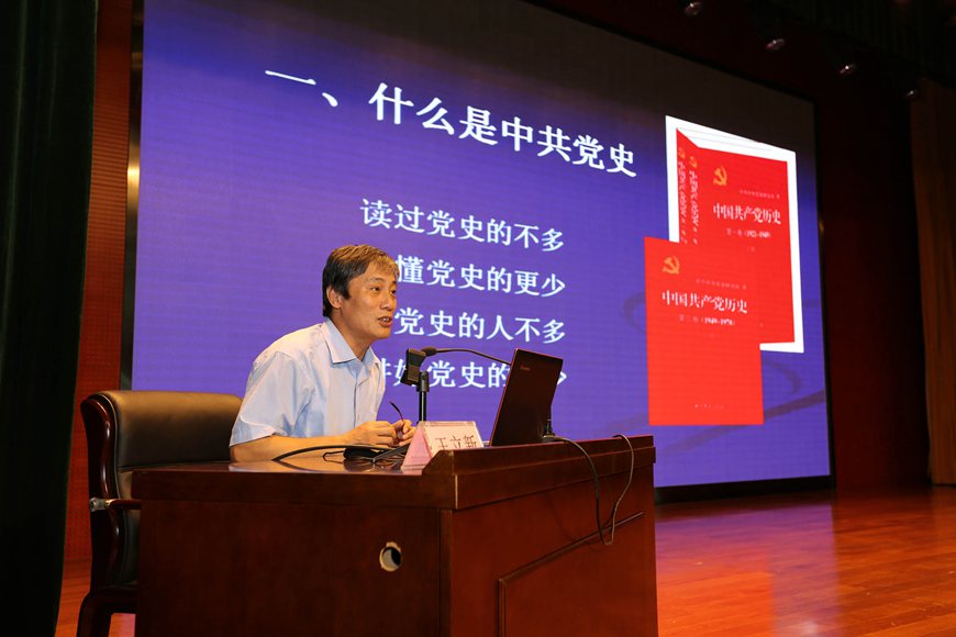 大会还邀请了山东省委党校党史教研部主任王立新教授为与会人员讲授了一场题为《正确认识党的光辉历程》的专题党课。王立新教授用四个词全面概括了中国共产党的光辉历程:博大精深、波澜壮阔、艰苦卓绝、丰功伟绩,并从这四个方面向参会人员阐述了中国共产党发展壮大的艰辛历程,使大家更加坚定了理想信念。会议最后举办了党建知识竞赛。
