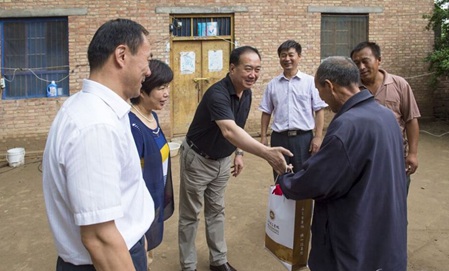 义诊同时,党委委员、副院长董庆就帮包村扶贫工作与医院派出的三位“第一书记”及县、乡领导进行了座谈,并实地考察了部分扶贫项目。董庆副院长还带着毛毯等生活用品走访慰问了帮包村的部分困难老人。医院党委办公室还为“第一书记”帮包村带来了党章、党徽、党员学习记录本等,为帮包村开展庆祝“七一”活动,强化党的建设做好大力支持。
