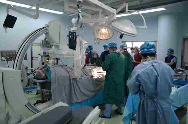 2015年7月6日,经过近一年的精心筹备与建设,东院复合手术室启用,并由血管外科与心内科密切配合,一站式顺利完成了四台高难度复合手术,其中胸降主动脉瘤、腹主动脉瘤(含冠状动脉造影、股动脉切开手术+腔内血管重建修复术)各一例,髂骨动脉血栓开放手术取栓+PTA成型术两例。