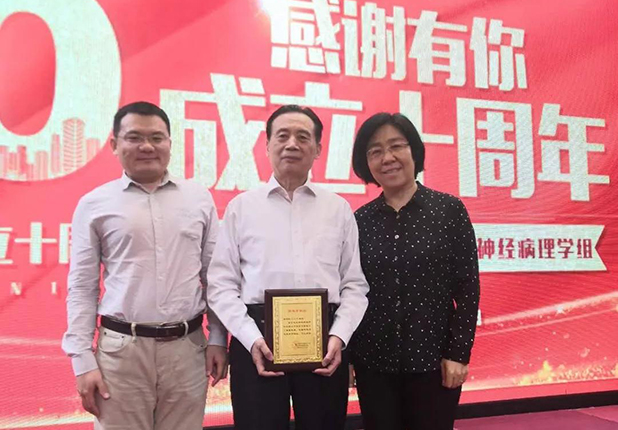近日,由中华医学会病理学分会脑神经病理学组主办的第十七届全国神经病理读片讨论会在深圳举行。为纪念中华医学会病理学分会脑神经病理学组成立10周年,大会举办了纪念活动并为学组10年来做出杰出贡献的全国老专家进行了表彰。我院原病理科主任、老专家王家耀主任医师荣获“特殊贡献奖”。