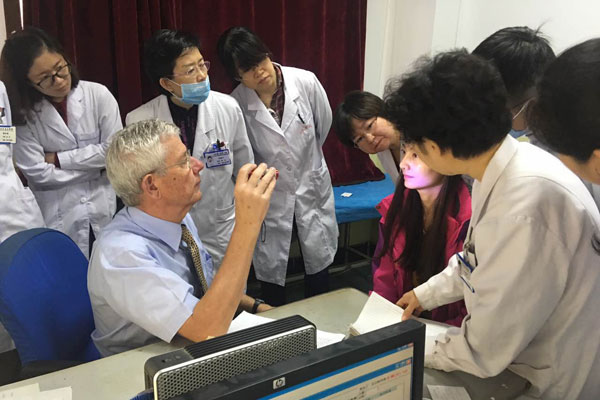 由中华健康快车基金会及我院眼科中心联合举办的中华健康快车眼科国际论坛及培训交流会于10月22日—24日在我院成功举行。澳大利亚皇家阿德莱德医院眼科主任兼阿德莱德大学眼科及视觉科学系Crompton教授携夫人一行来我院举办讲座并进行了相关疑难病例会诊及年轻眼科医师培训。Crompton教授的敬业精神、教学技巧及精湛医术受到院内外医生的广泛好评。约80名医护人员参加了本次会议及培训。
