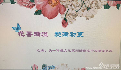 在主题活动环节,花艺师分别从中国传统插花的发展历史、插花风格与类型、花材花器的选择、作品的造型、色彩搭配及传统插花审美精髓等进行了详细介绍,并与西方插花艺术进行了对比讲解与现场演示。