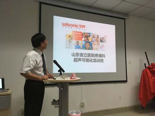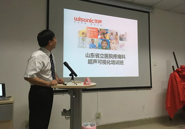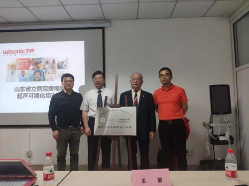 宋文阁教授在学习班伊始进行致辞,肯定了超声技术在疼痛领域的重要地位。宋文革、孙涛教授以及深圳华声医疗相关负责人一起为“山东省立医院疼痛科-深圳华声医疗超声可视化联合培训基地”揭牌。相信该技术可以在省内乃至全国得到推广和发展。