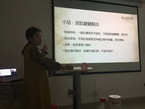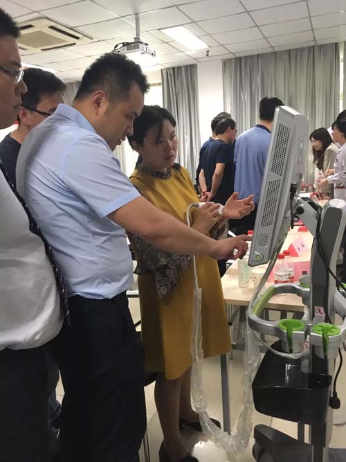 疼痛科负责人孙涛教授主持了本次培训班。疼痛科王珺楠医师、杨聪娴医师、上海六院疼痛科杜冬萍主任等分别就超声引导下三叉神经穿刺、上肢部位超声引导介入治疗以及超声在脊柱源性疼痛的应用等内容进行了精彩纷呈的授课与实际操作演示。