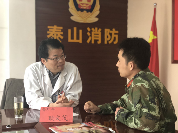 针对消防战士们的特殊工作性质,本次义诊的专家队伍涵盖了推拿科、疼痛科、心内科、普外科、内科综合科、骨关节科等多个专业。战士们仔细的询问着专家自身的疑问,专家们更是热心认真的为每一位战士答疑解惑。