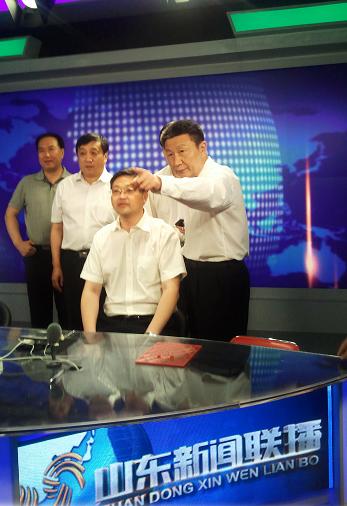 山东广播电视台台长韩国强陪同院领导参观新闻联播直播间