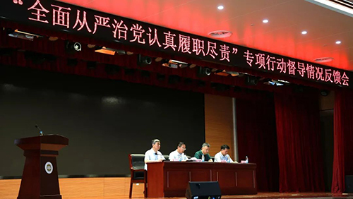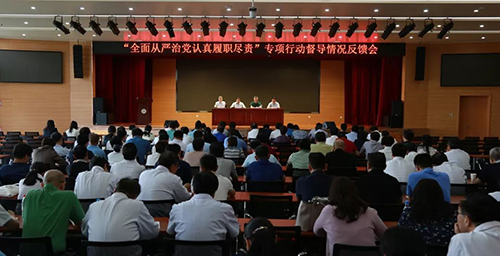 于富军同志代表委党组向医院反馈了专项行动督导意见,充分肯定了医院“全面从严治党认真履职尽责”专项行动开展的工作和取得的成效,指出了我院在政治站位、从严管党治党、担当作为、问题整改等方面存在的突出问题。同时,对我院下一步的工作提出了六点要求:一要对专项行动开展情况进行“回头看”;二要提高政治站位,深入推进全面从严治党;三要紧紧围绕“走在前列、全面开创”,扎实推进医院改革发展各项工作;四要强化担当意识,狠抓任务落实;五要加强日常管理和纪律约束,树立医院良好社会形象;六要切实加大整改工作力度,建立完善长效机制。