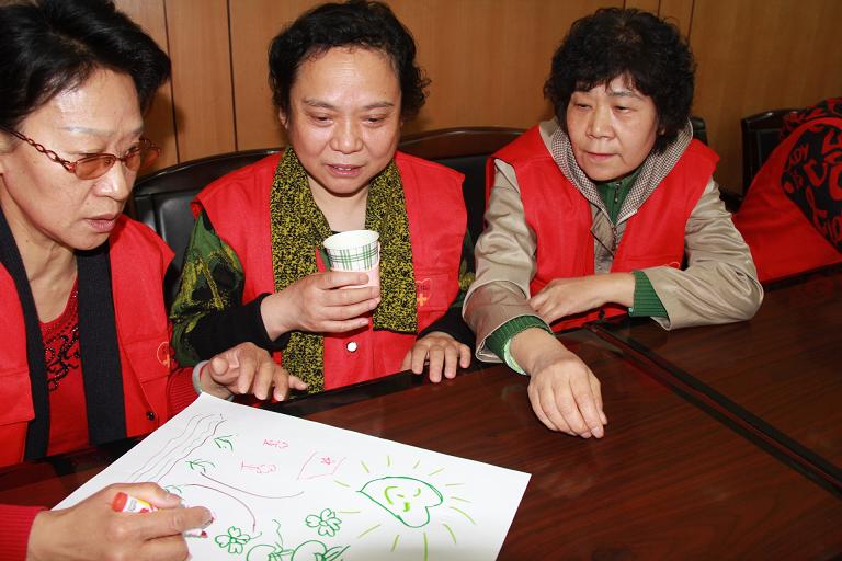 简短的培训结束后,专业社工别出心裁,为这些老年志愿者开展了新颖而趣味活动,如“我的未来我做主”主题绘画、“欢唱我歌”等,为这些巾帼志愿者度过一个愉快的节日。
