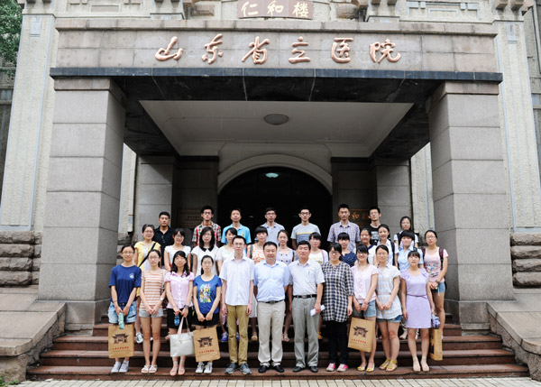 7月18日,2013年山东大学医学院 “齐鲁风”全国优秀大学生夏令营的27名同学到我院参观交流,科教部副主任王夏炜同志参加了本次活动并与同学们合影留念。