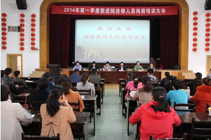 3月17日-19日,医务部组织了为期3天的“山东省立医院2014年第一季度进修人员岗前培训大会”,医院副院长、党委委员王玉林,工会主席、党委委员卢宝彦出席岗前培训开班仪式,医务部负责人曹铭锋主持会议。