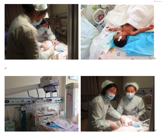 经外周静脉穿刺中心静脉置管(PICC)是在手臂的外周静脉进行穿刺,置入导管,末端直达靠近心脏的大静脉,避免高渗药物与手臂静脉的直接接触,加之大静脉的血流速度快,可迅速冲稀该类药物,防止药物对血管的刺激,因此能够有效保护上肢静脉,减少液体外渗以及静脉炎的发生;而且,该类置管安全、留置时间较长,可避免反复表浅静脉穿刺给患儿造成的感染可能性及身心伤害。所以,PICC置管可大大改善(极)早产儿的生存率、提高其生存质量。3月14日,东院儿科病房PICC专科护士邵伟芹为新生儿科新入院的一名胎龄28+3周、出生体重1050g的极低出生体重儿成功置入PICC管道。操作在辐射台上完成,前后用时仅30分钟,床旁X线摄片显示导管末端位置准确。3月16日,科室又成功为一名胎龄25+5周、出生体重870g的超低出生体重极早产儿完成PICC置管,两例置管均输液通畅,使用良好。