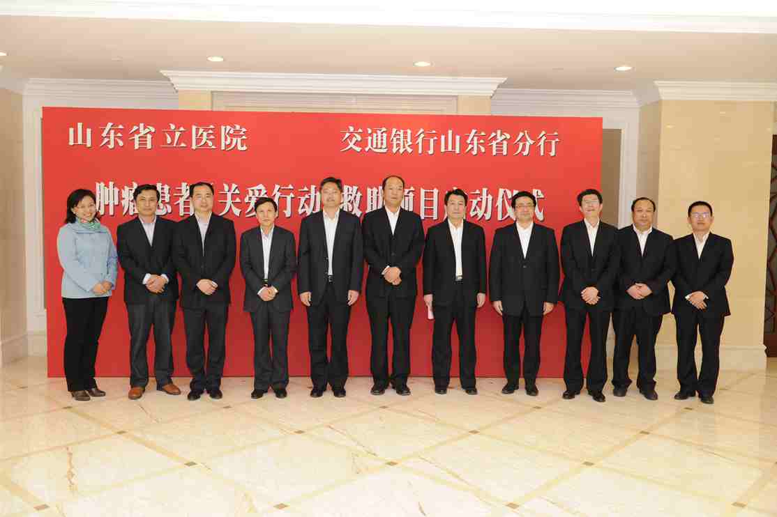 2014年4月3日,由山东省立医院与交通银行山东省分行合作的肿瘤患者关爱行动救助项目在交通银行正式启动,山东省立医院党委书记、院长秦成勇,总会计师姜民杰,以及交通银行山东省分行领导参加了此次启动仪式,参加此次仪式的还有山东省立医院医院办公室主任王省,医务社会工作办公室主任尉真,肿瘤中心宋伟主任。此项目是第一个针对贫困肿瘤患者的医疗救助项目,由医务社工办与肿瘤中心共同合作进行,将对贫困肿瘤患者起到缓解看病贵的问题。