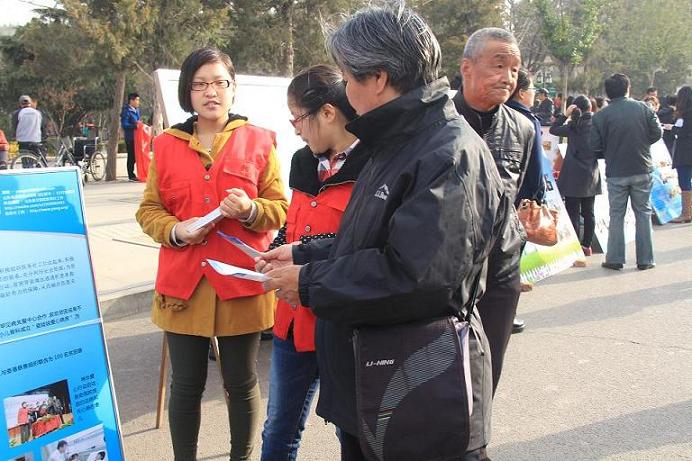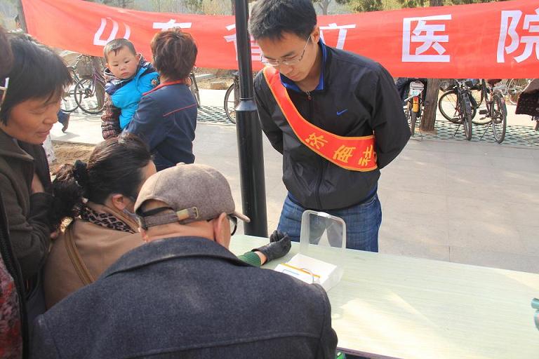 三月的英雄山,花团锦簇,绿草如茵,到处一片郁郁葱葱的暖春景象。上午8点30分,启动仪式正式开始后,医务社工办工作人员迅速搭建好临时工作台,并在展位区排列出省立医院宣传展板。展板利用简洁的说明文字和生动的实例图片,向市民们呈现了医务社工办的专业服务、志愿活动和惠民医疗救助等基本信息,给他们留下了第一印象。接着,针对本次活动的服务人群主要是老年人这一情况,志愿者向活动现场的群众及其他单位分发健康宣传单,帮助他们在日常生活中从生理和心理两个方面保持健康。同时,为提高现场群众的积极性和参与度,社工办推出“爱心义诊”,给广大市民现场免费测量血压并讲解生活中的医学小常识。这一活动迅速吸引了大批市民,他们自觉排成队,一边在志愿者的帮助下按顺序测量血压,一边彼此交流着省立医院以及社工日的相关话题。工作人员和志愿者真诚的服务和耐心的讲解赢得了市民们的阵阵赞誉,现场不时传出爽朗的笑声,引得其他单位的工作人员也过来观看和交流,将整个活动推向高潮。