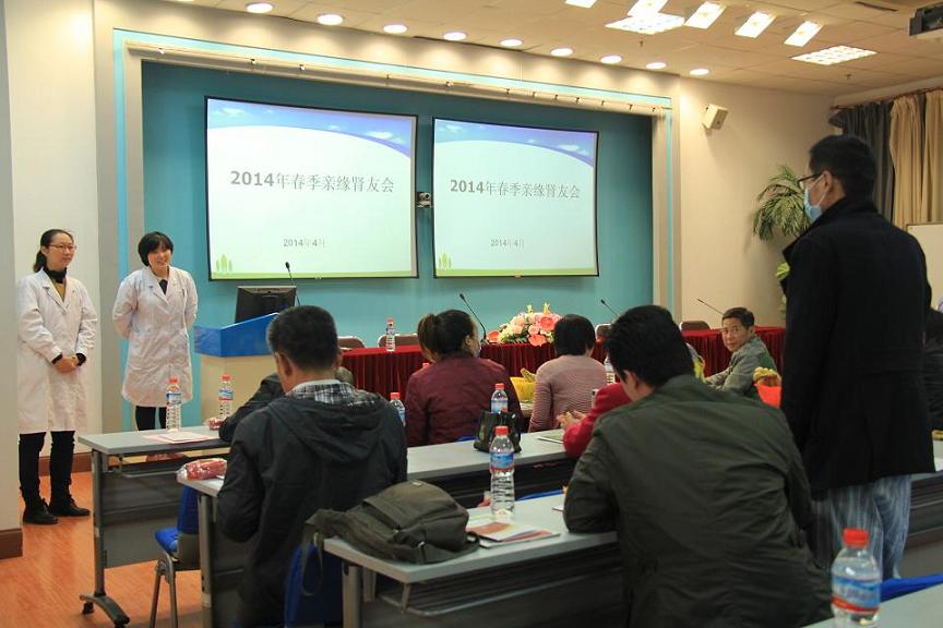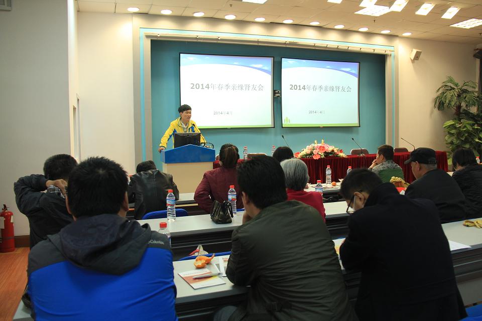 4月11日上午,医务社会工作办公室与肾移植科在山东省立医院3号病房楼4楼多媒体报告厅联合举办了“2014年春季肾友会”, 为肾移植病人及其家属开展健康管理知识讲座的同时,医院社工通过专业的小组服务方法带领病友及其家属、医护人员等互动,增进医患沟通,促进病人身心康复。医务社会工作办公室主任尉真、肾移植科孟慧林主任、护士长王新芝等人员参加了本次肾友会。