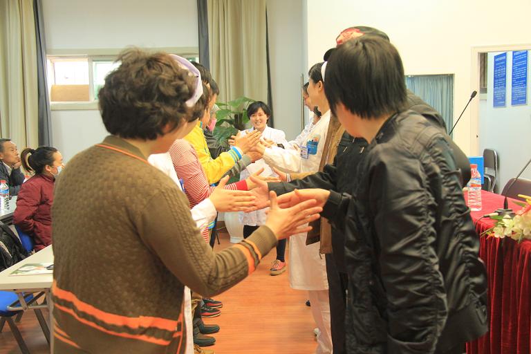 2013年10月,以山东省慈善总会的亲体肾移植救助项目为切入点,医务社会工作办公室与肾移植科联合启动了“亲缘”肾移植病友会,为贫困病人提供包括经济援助、心理疏导、压力缓解和情绪支持等在内的专业服务,以促进病人的全面康复,凸显公益性。截至今日已是第3次肾友会活动,形式渐渐成熟,病人由被动变主动,医护人员与专业社工通力合作,既关注病人的身体健康,又关注病人的心理健康,突出了“全人”、“全家”、“全程”、“全队”的“四全”理念,既减轻了医护人员的工作,又提高了健康教育的效果,不失为可借鉴和值得推广的健康教育新模式。