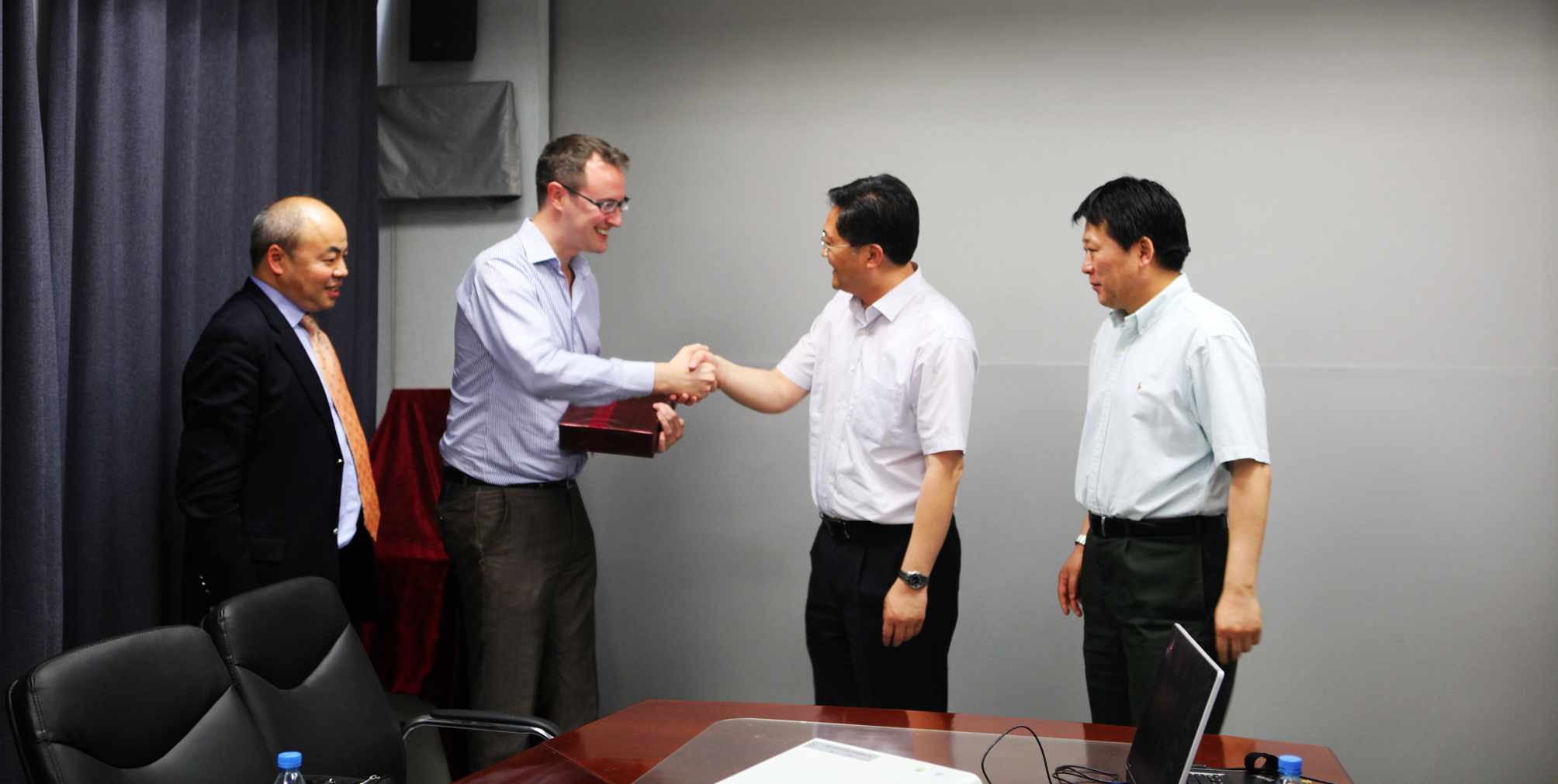 秦成勇院长对陶思义先生一行的来访表示欢迎,秦院长说,山东是中国人口大省,省立医院作为山东省最大的医院,发展前景广阔,双方今后在医疗领域合作空间很大,希望随着双方交流的不断深入,找到更多的合作切入点开展合作,省立医院会以开放的姿态欢迎英国的医疗企业参与医院的发展建设中来。赵家军副院长认为,英国作为发达国家,在医院信息化管理、全科医师培训等方面有很多值得我院借鉴之处,希望英国的医疗机构、企业能在这些方面提供帮助。陶思义一行希望能够充分利用英在华的外交合作资源,促进英国医疗卫生机构及医疗企业与省立医院的合作和友好交往。陶思义先生表示,省立医院在远程医学方面已经走在世界前列,自主开发的远程查房系统更是代表了远程医学的发展方向,此次交流结束后,他们将于下个月回英国组织一批医疗机构与企业负责人来山东交流访问,希望届时双方都能达到交流目的。