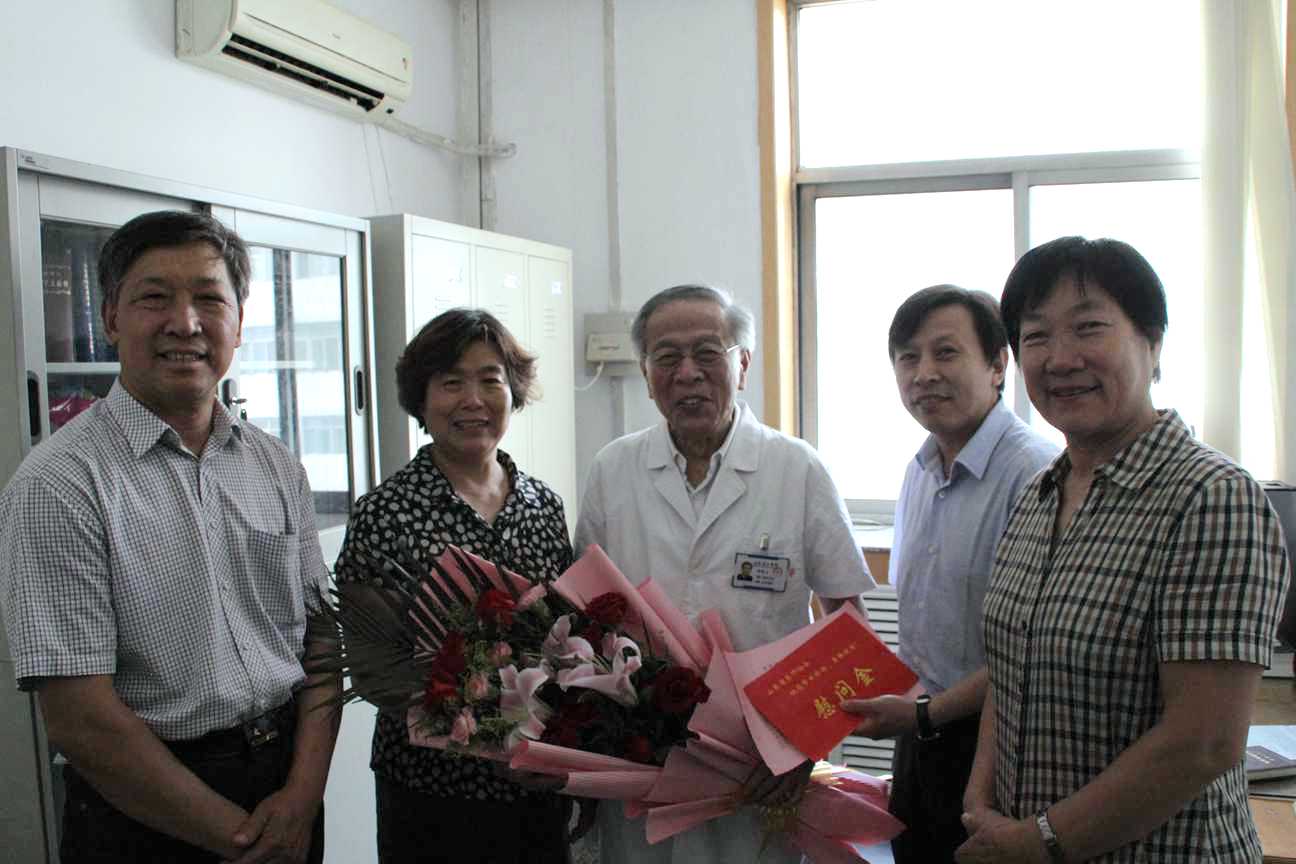 刘玉芹会长一行在总会计师姜民杰等人陪同下,来到消化内科病房看望医务工作者,走访慰问了正在查房的老专家朱菊人教授。朱教授现年82岁,依然坚持查房门诊,刘玉芹会长详细询问了朱教授的生活、工作和身体状况,为朱教授带来了节日的祝福,代表医师协会对朱教授为人民群众的健康事业作出的贡献表示衷心的感谢,希望他保重好身体,并代表协会为朱教授带来了鲜花和慰问金。朱菊人教授对医师协会的关心表示感谢,表示将继续为百姓的健康事业奉献出自己的爱心。