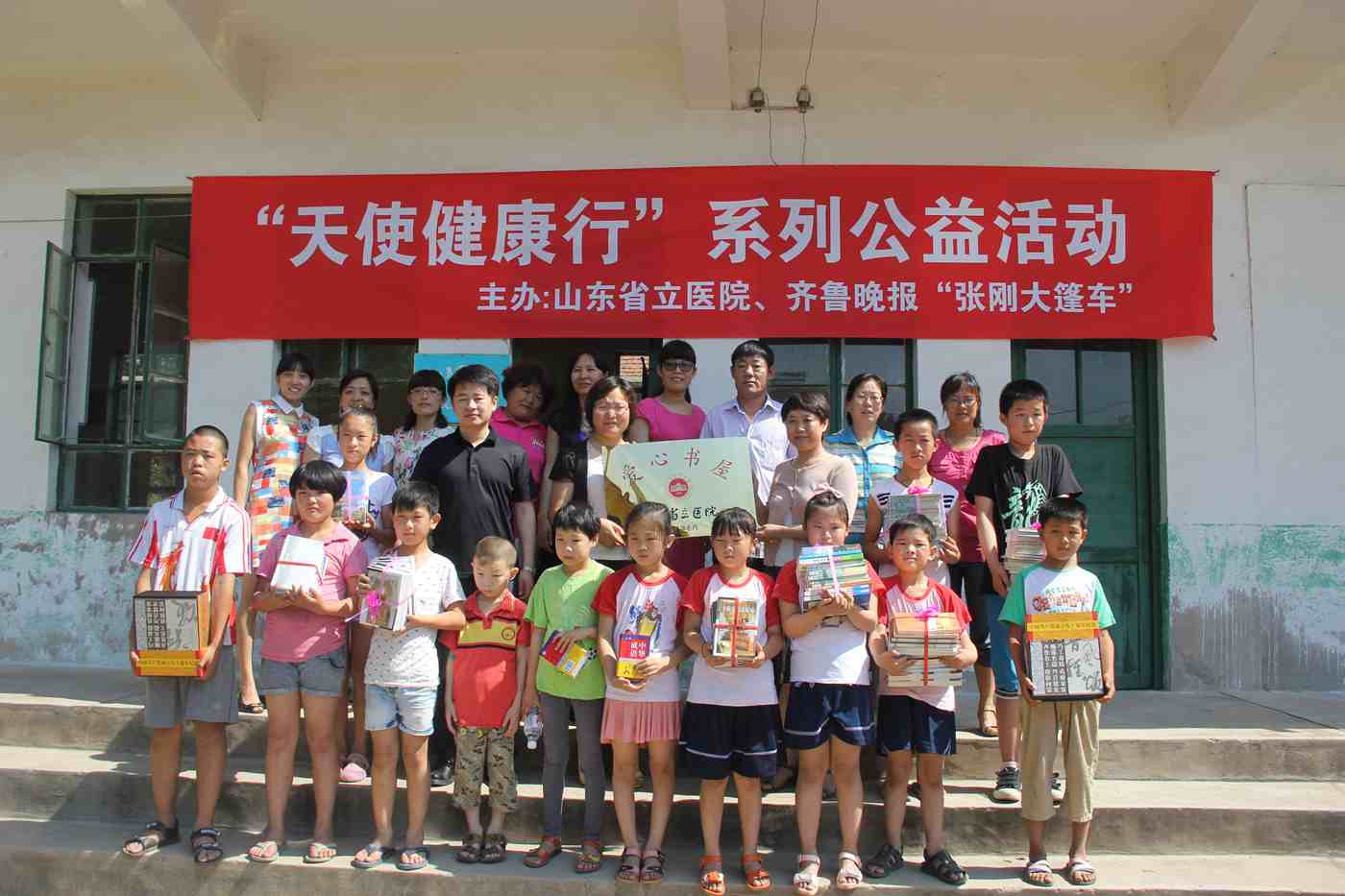 为践行党的群众路线,关注留守儿童暑期安全,6月28日上午,山东省立医院携手齐鲁晚报“张刚大篷车”栏目联合开展“天使健康行”第二期公益活动,在长清区万德镇义灵关村留守儿童中心成立了“山东省立医院爱心书屋”。由护理部号召全院捐赠成立,旨在为留守儿童创建一个快乐的读书园地,丰富业余生活、减轻孤独感、增长新知识。此次共收到各类捐赠书籍1000余册,图书受到孩子们的广泛欢迎,孩子们好奇地围在图书前左看右看,“这些书,我只是听过书名,但从来没有读过呢……”