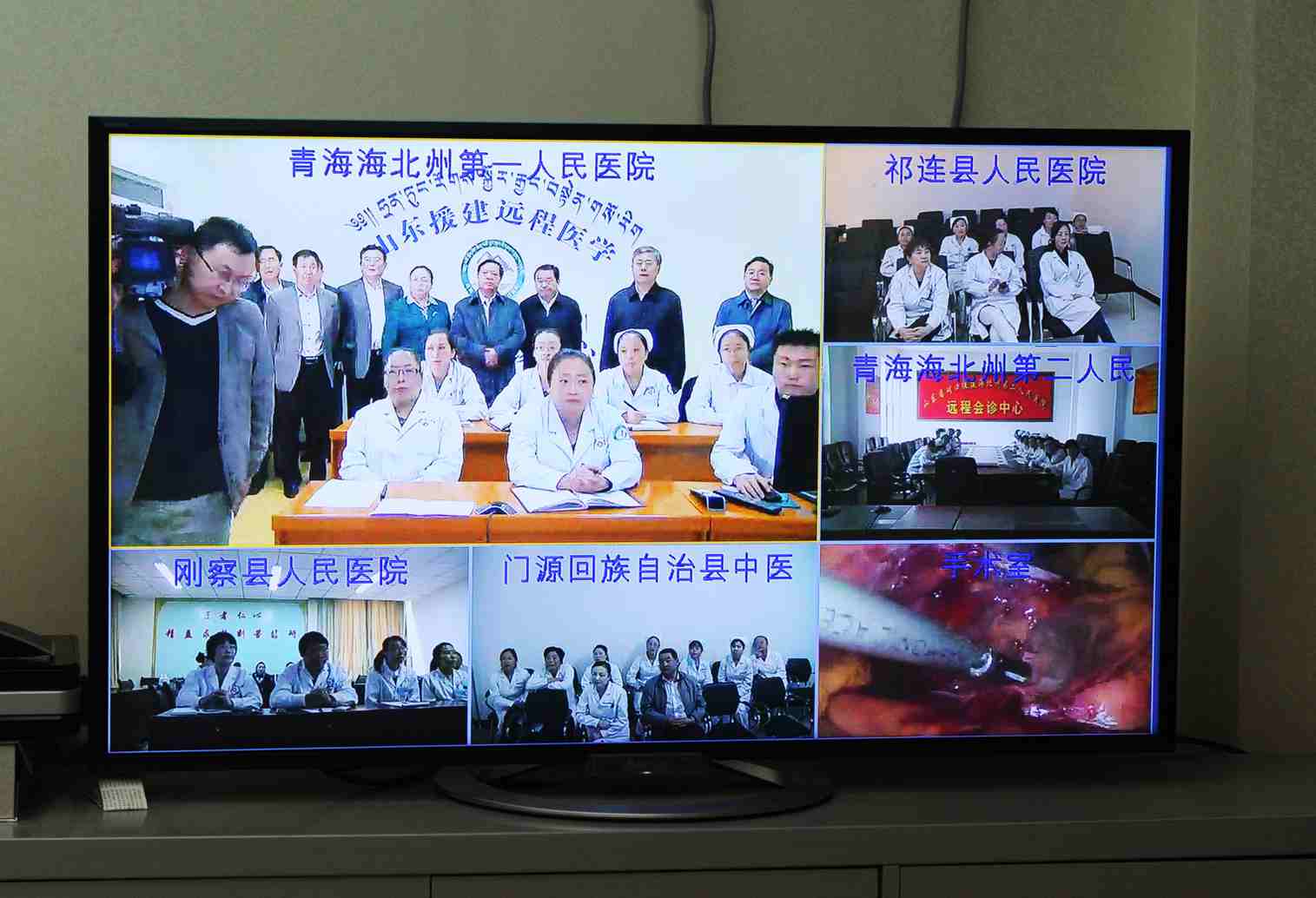 郭省长一行来到青海省海北州第一人民医院远程医学会诊中心,看到我院产科主任王谢桐正在进行《产后出血的保守性治疗》的远程教学培训,与此同时,另一个画面是正在进行的妇科手术实时直播,整个手术画面清晰,过程完整。郭省长询问正在听课的医护人员的感受,学员反响强烈,受益匪浅,表示自身业务能力和疑难重症诊治水平得到提高,纷纷赞扬山东省先进的医疗技术,希望今后这种远在万里、近在身边的讲座能够经常举办。