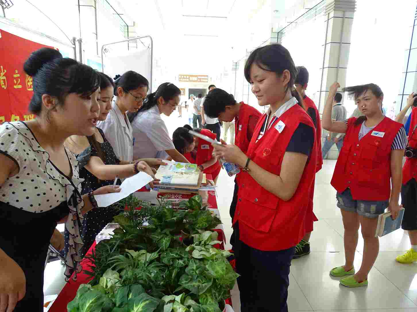 On August 27th, these young volunteers arrived at the hospital early. Their day of hospital volunteer started as they put on the iconic red jacket, signing the volunteers. First, they helped to arrange the The large-scale public welfare activities held by many organizations, Trading books for green plants. ON the day, more than 200 people came for the activity and over 400 books were received. Some of these books were given to the hospital after the classification for the using of ill kids, encouraging them to become brave kids.