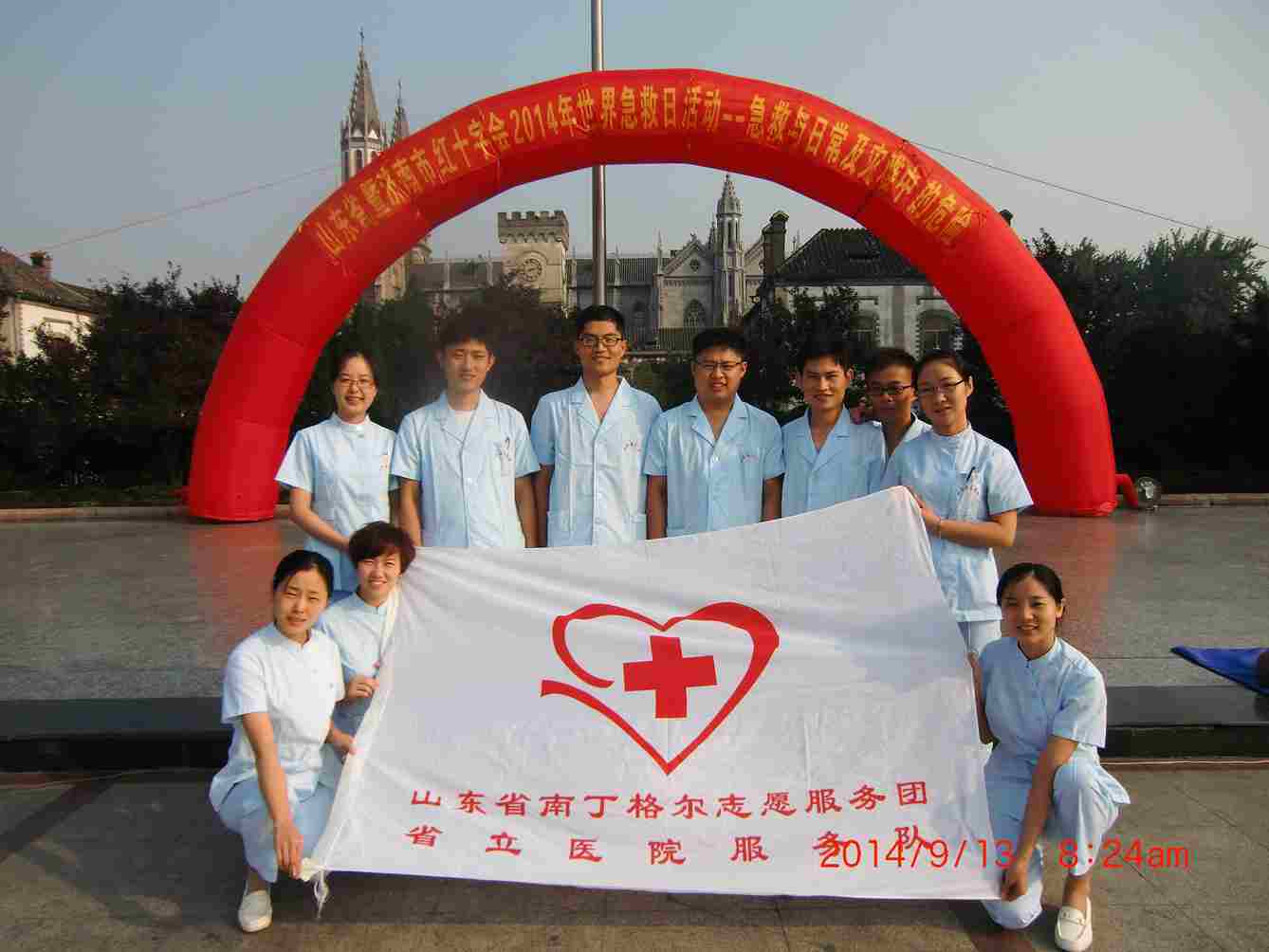 没错,坐在车里面的正是我们山东省立医院南丁格尔志愿服务队,我们应邀来到济南市洪楼广场为当地社区居民展开互动式教学。今年的9月13日是一个较为特殊的日子:国际红十字会与红新月国际联合会将每年9月的第二个星期六定为“世界急救日”,而今天它如约而至。