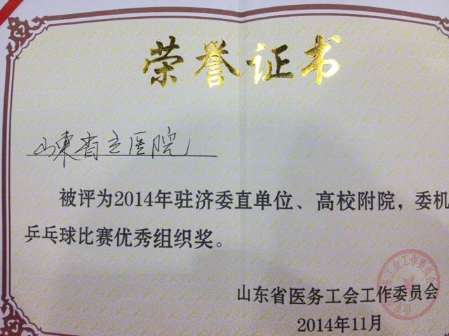 为了践行“健康山东”行动计划,丰富广大职工文化生活,提高职工身体素质,加强交流,增进职工队伍凝聚力,11月1—2日,山东省医务工会在山东师范大学乒乓球馆举办2014年驻济委直单位、高校附院、委机关乒乓球比赛,本次比赛共计来自26个驻济单位、158名队员参加比赛。我院工会主席卢宝彦同志带队参赛。