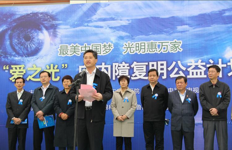 2014年11月5日下午,“爱之光”白内障免费复明手术公益活动在聊城莘县燕店镇卫生院启动。山东省副省长、九三学社山东省委主委王随莲,山东广播电视台总编辑吕芃,聊城市委副书记、市长王忠林,山东省卫生和计划生育委员会副主任、党组副书记袭燕,山东省立医院院长、党委书记秦成勇等出席。