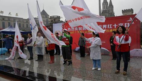 今年世界红十字日的主题是“践行基本原则——纪念红十字和新月运动基本原则通过50周年”。 省、市红十字会工作人员及志愿者、爱心市民等230余人冒雨参与活动,其中我院南丁格尔志愿服务队7名志愿者,在急救中心郑晓丽护士长的带队下参加活动。