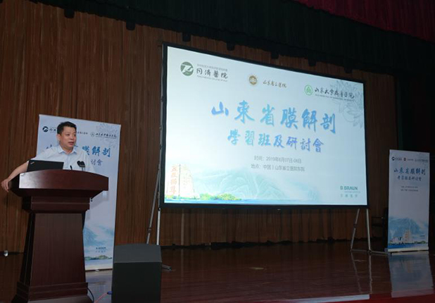 6月8日,在端午假期期间,胃肠外科在东院区诚和楼成功举办首届山东省膜解剖学习班与研讨会,这也是我院胃肠外科成功举办的第39期腹腔镜胃肠手术高级培训班。膜解剖作为一种新理念,有着与既往不同的理论体系和临床手术实践,近年来受到国际学术界的持续关注。研讨会由党委委员、副院长李乐平教授担任大会主席,靖昌庆主任担任执行主席,会议邀请膜解剖提出和倡导者——华中科技大学同济医院龚建平教授演示手术,来自山东大学齐鲁医院、山东省千佛山医院、山东省肿瘤医院、解放军第960医院以及全省16地市知名医院的约120名专家到会交流学习,会议取得了圆满成功。大会由靖昌庆主任主持。