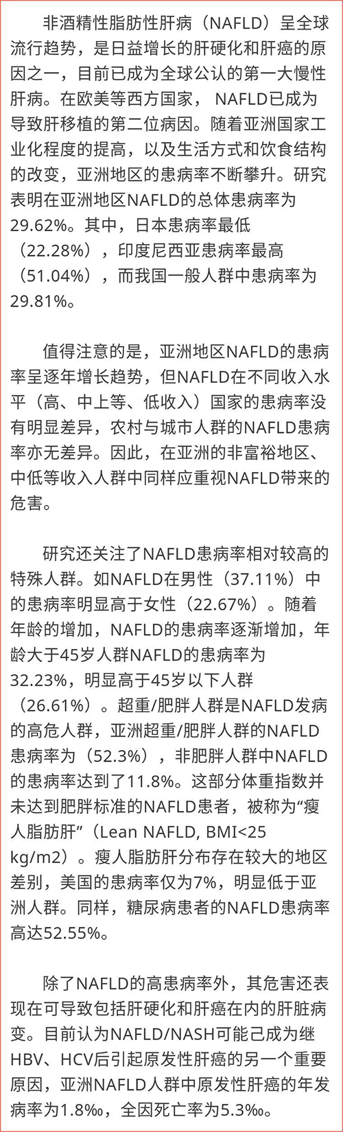 如果不采取积极的防控措施,随着人口老龄化,预测未来几十年NAFLD的疾病负担将大幅增加。在我国一般人群中,肥胖和糖尿病的增加明显晚于美国和欧洲国家,终末期肝病发病率和死亡率的增加带来的影响相应滞后。因此,如果我国的肥胖水平继续发展到当今美国的水平(约30%的成年人患有肥胖),我国NAFLD的疾病负担会更加严重。