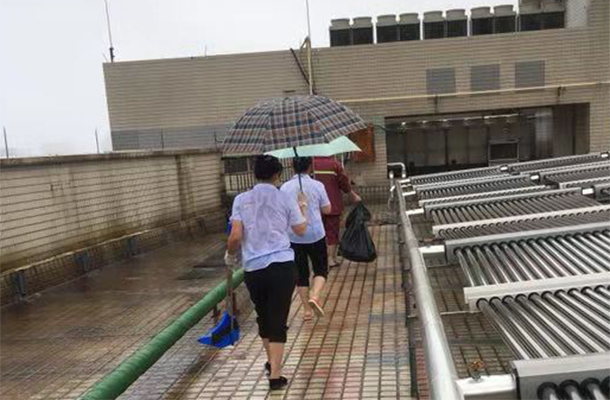 8月11日持续降雨,物业公司项目经理带领巡检小组,再次巡检楼顶平台的排水系统、各科室门窗等,并对漏雨、门窗损坏等情况进行记录、报修、跟踪,要求管理人员、一线员工在此期间加强巡视,做到及时发现、及时处理,确保医院财产安全。8月11日夜间,物业公司安排25人留守岗位,以应对突发事件。