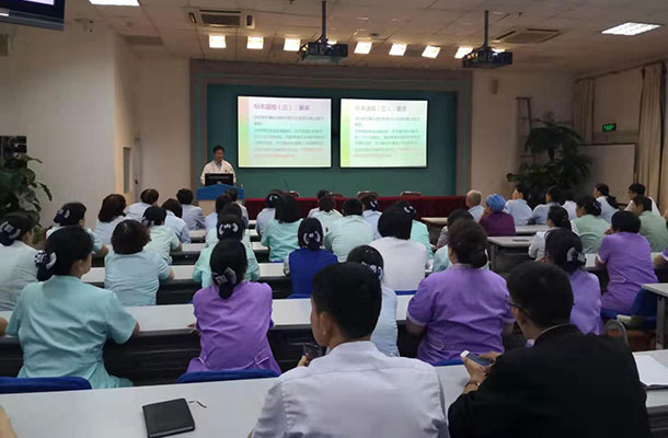 为不断提高物业人员业务能力,规范取血、送检工作流程、更好的服务于一线临床科室,9月19日,输血科浑守永主任在三号病房楼学术报告厅对物业人员进行取血、送检专项培训。物业公司管理人员及运送人员80余人参加培训。