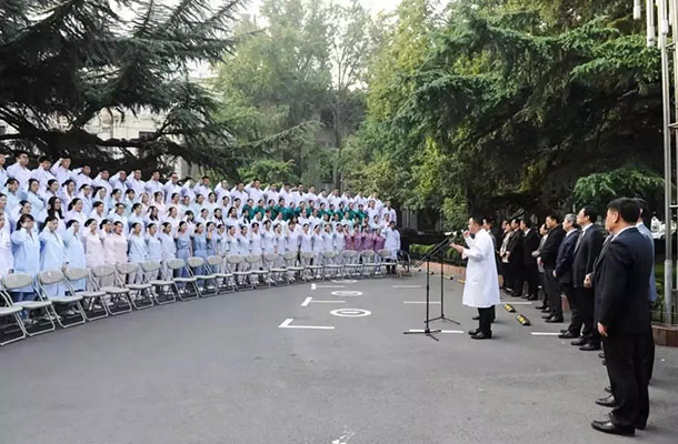 宣誓仪式上,医院神经内科主任杜怡峰带领新职工们进行庄严宣誓。铮铮誓言表达了新职工们不忘初心,牢记使命,对医学事业不懈追求,争当合格医务工作者的坚定信念。