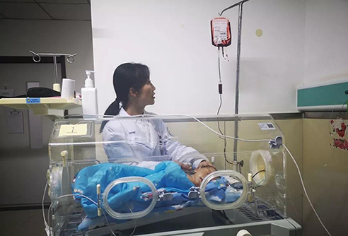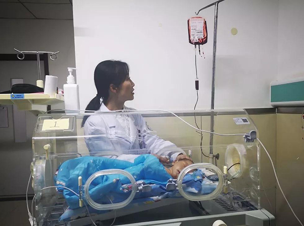 宋嘉立即把患儿抱入新生儿病房,放入暖箱,连接心电监护,患儿的心率180次/分,血氧饱和度65%,立即给予鼻导管吸氧。解下患儿腹部的棉布,患儿脐带不断向外渗血,宋嘉快速下达医嘱,病房里医护人员有条不紊地忙碌起来,有的忙着消毒腹部皮肤,有的忙着动脉穿刺,有的忙着准备药品,有的忙着静脉微泵输液,有的忙着脐部止血……1小时后患儿的生命体征得到好转,心率降到160次/分,血氧饱和度升到85%,脐带出血减少。患儿也从最初的毫无反应出现哭闹,吃了10ml奶——他已经12小时没吃过奶了。