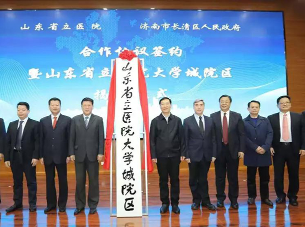 会上,省立医院赵家军院长与长清区委副书记、区长赵居安签署合作协议,省卫健委党组成员、副主任吴向东和济南市卫健委党组书记、主任马效恩为“山东省立医院大学城院区”揭牌。