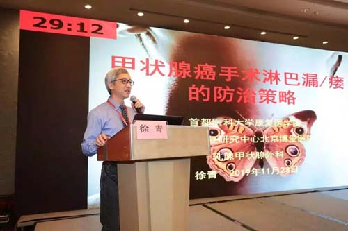 学术会议邀请中国人民解放军总医院田文教授、中国康复研究中心北京博爱医院徐青教授、浙江大学附属第二医院王勇教授、山东大学齐鲁医院曾庆东教授,分别以《甲状腺癌规范化诊疗的重要性及实施》《甲状腺癌手术淋巴漏/瘘的防治策略》《腔镜甲状腺手术的演变和思考》《甲状腺外科治疗的热点问题》为题进行专题讲座。会议通过名家授课、专家讨论的形式对临床问题进行深入的分析与探讨,促进甲状腺疾病的规范化诊治及病人的精细化管理。