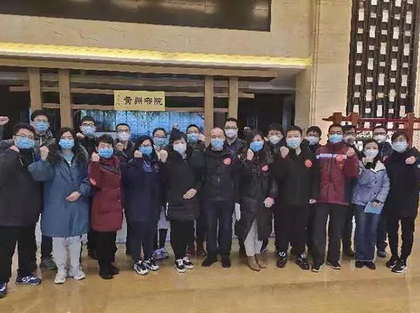 18:00 院长赵家军,副院长王荣、李乐平再次叮嘱5位队员注意个人防护,医院是大后方,坚强支持。