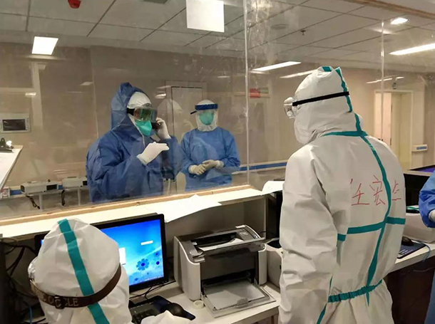 “在去给病人做这种气管插管时,有可能病人的分泌物会喷溅出来,造成传染,我们必须全身穿着防护设备,把风险降到最低。”