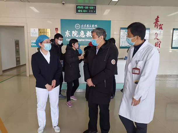2月3日上午,山东省立医院党委书记赵升田分别在中心院区和东院区督导节后门诊工作,慰问一线工作人员。