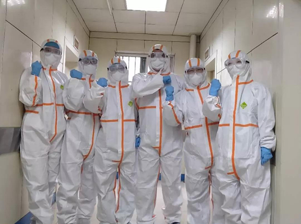 每天,护理人员在各岗位忙碌着穿梭着,不停的与患者家属沟通,一天下来嗓子变得沙哑。然而为了省下一件防护服,她们渴急了都只是用水润一下嘴唇。穿着厚重的防护装备,保质保量完成工作。