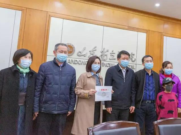 长江商学院山东校友会向我院捐赠一批医用防护物资。赵家军院长对长江商学院山东校友会的善行义举表示了诚挚的感谢,并向捐赠方代表颁发了捐赠证书。赵家军表示,医用防护物资是当前医院做好防控新冠肺炎工作的重要保障物资,需求量很大,现在各地医院普遍紧缺。长江商学院山东校友会的此次捐赠是雪中送炭,医院将其全部用于疫情防控工作。