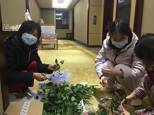 抬头间案头的玫瑰花已经美丽绽放,6天前还是含苞娇羞。记得那天是20号,有爱心人士给山东支援湖北第三批医疗队送来了一份特殊的礼物——半车厢的玫瑰花,足足有四五百支。这可是比生活物资还贵重的精神慰藉啊!