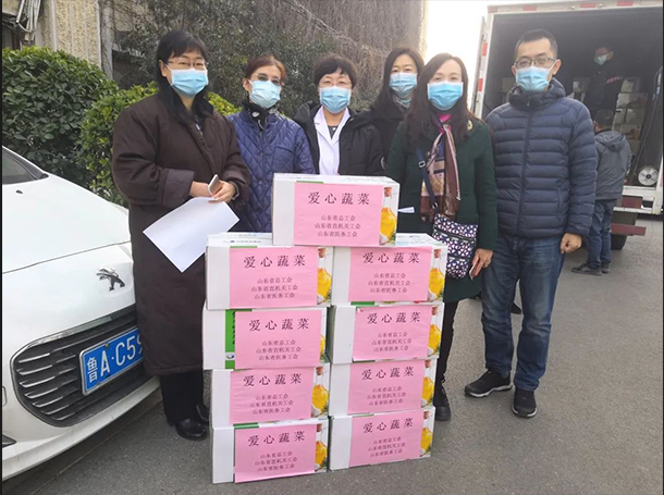 3月6日上午,山东第一医科大学附属省立医院工会及各分会关心关爱工作小组成员们把新鲜蔬菜等慰问品一一送到92名抗击新冠肺炎疫情一线工作人员家中。