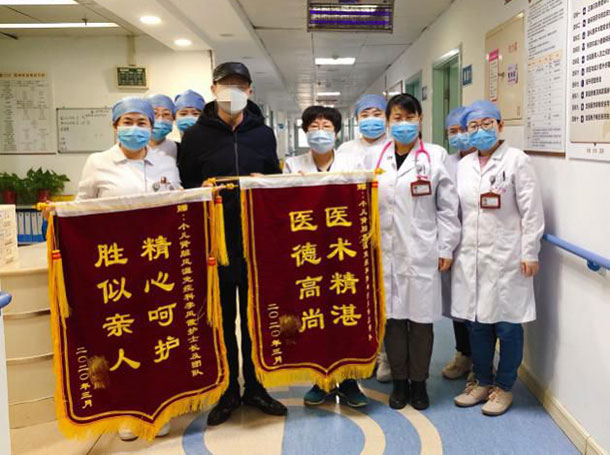 3岁半的丹丹(化名)是一个漂亮可爱的小姑娘,两年前被确诊为肾病综合征,多次住院的她与医院小儿肾脏风湿免疫科结下了深厚的情谊。春节期间,丹丹病情再次反复,出现了严重水肿、大量蛋白尿,并发重症肺炎,病情十分危重。时值新冠肺炎疫情防控形势极度严峻之际,面对懵懂可爱的孩子、不知所措的家长,小儿肾脏风湿免疫科全体医护人员挺身而出,积极救治,丹丹最终转危为安后出院。丹丹的家长此次专门向科室送来锦旗和感谢信。
